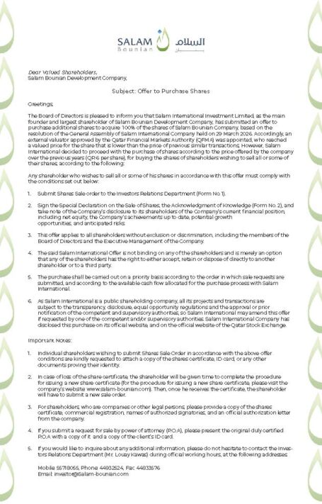 Salam Bounian – Share Purchase Offer